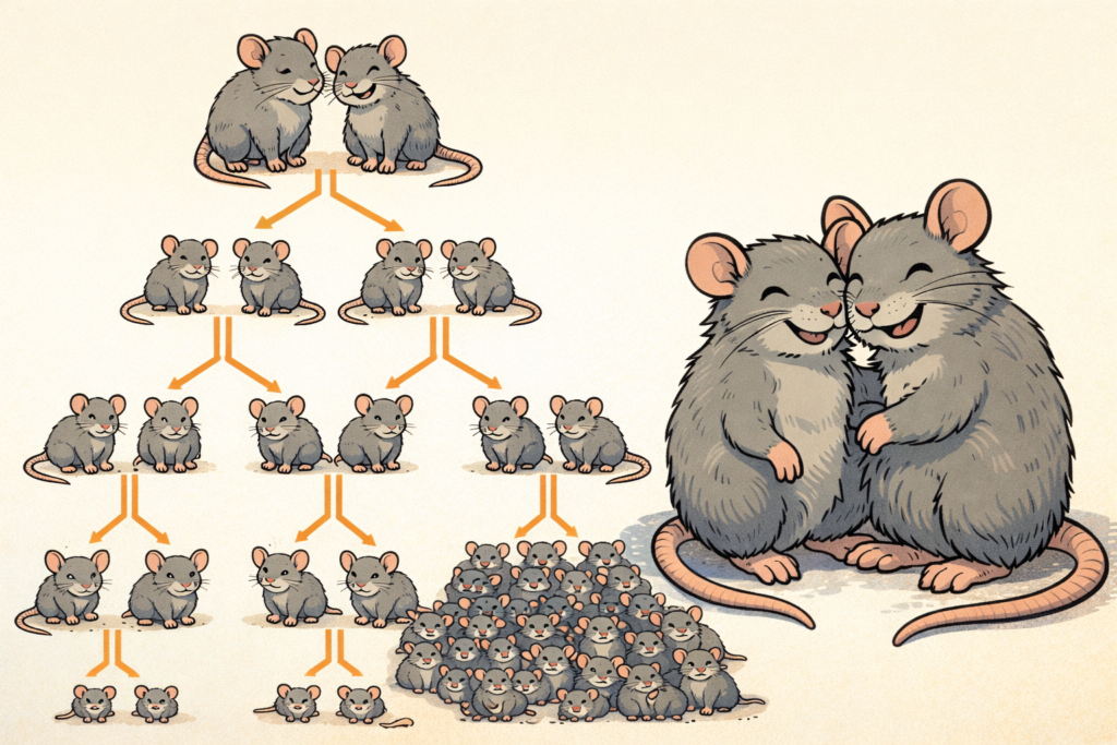 ネズミは繁殖力が高く、短期間で被害が拡大します。