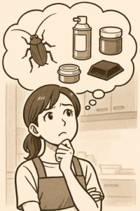 - **ベイト剤(食毒剤)**を壁際・冷蔵庫裏などに設置