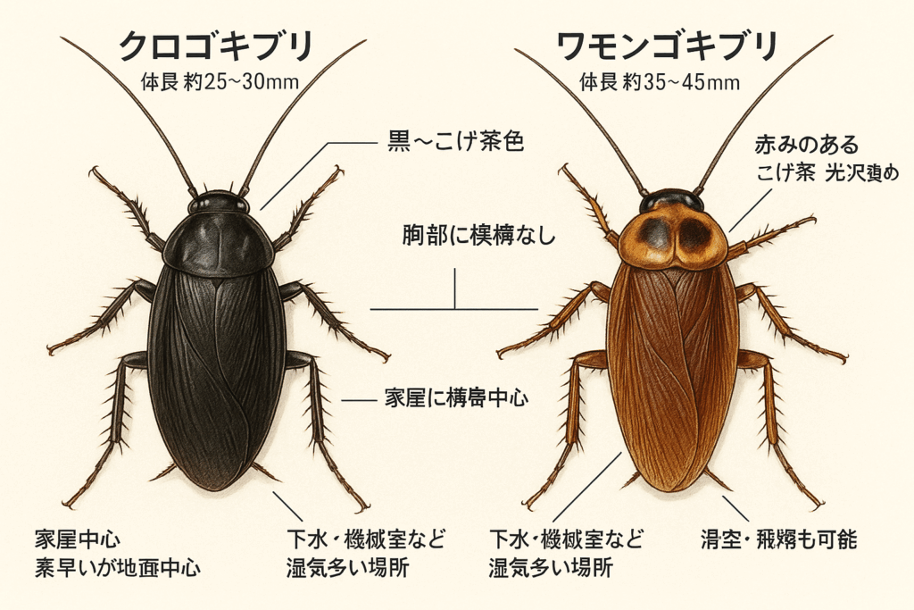 近年は「より大型で光沢のあるワモンゴキブリ」の割合が目立ち始めています。